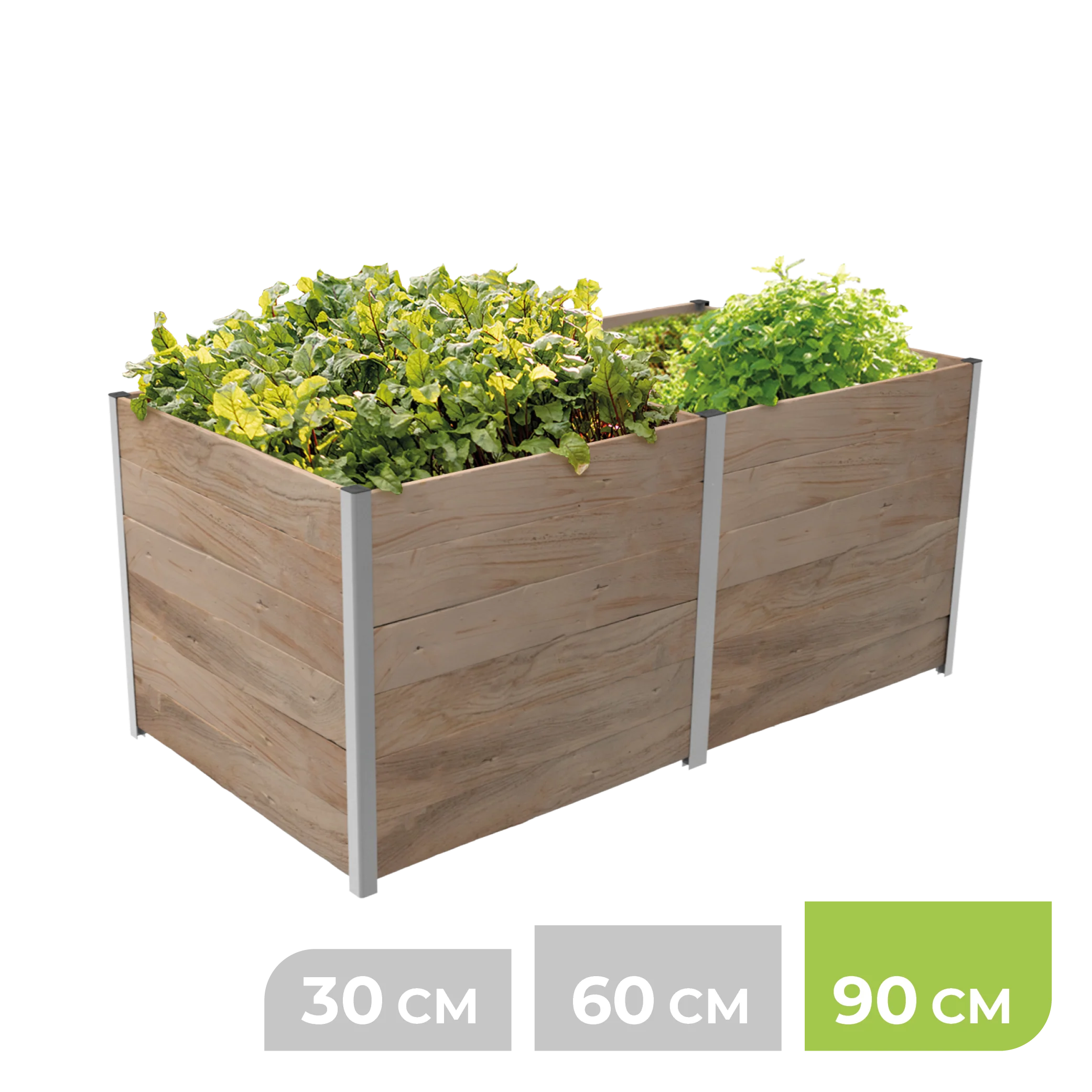 Das ErnteMAXX Hochbeet ist in drei praktischen Höhen erhältlich – 30 cm, 60 cm und 90 cm. Diese Höhenvarianten erlauben eine individuelle Anpassung an Ihre spezifischen Bedürfnisse: