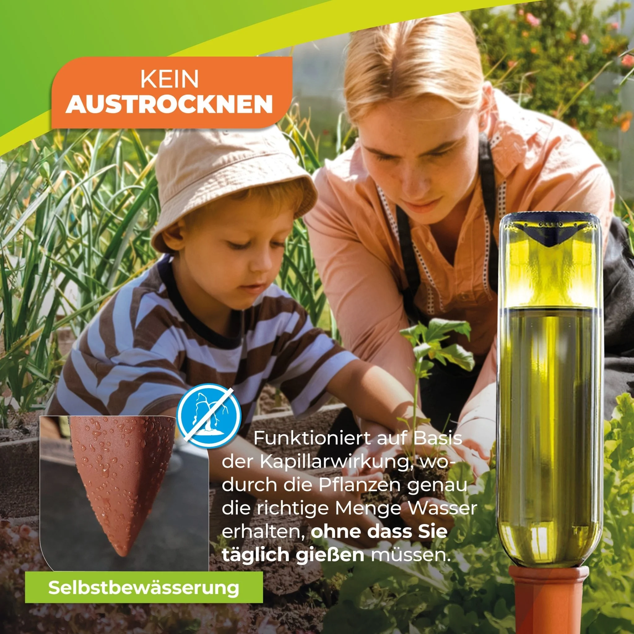 Immer die passende Wassermenge für Ihre Pflanzen. Unser Topfpflanzen Bewässerungssystem "Hydro Wine" versorgt Ihre Pflanzenwurzeln mit der optimal dosierten Menge an Wasser, während Sie zum Beispiel in Kurzurlaub fahren können.