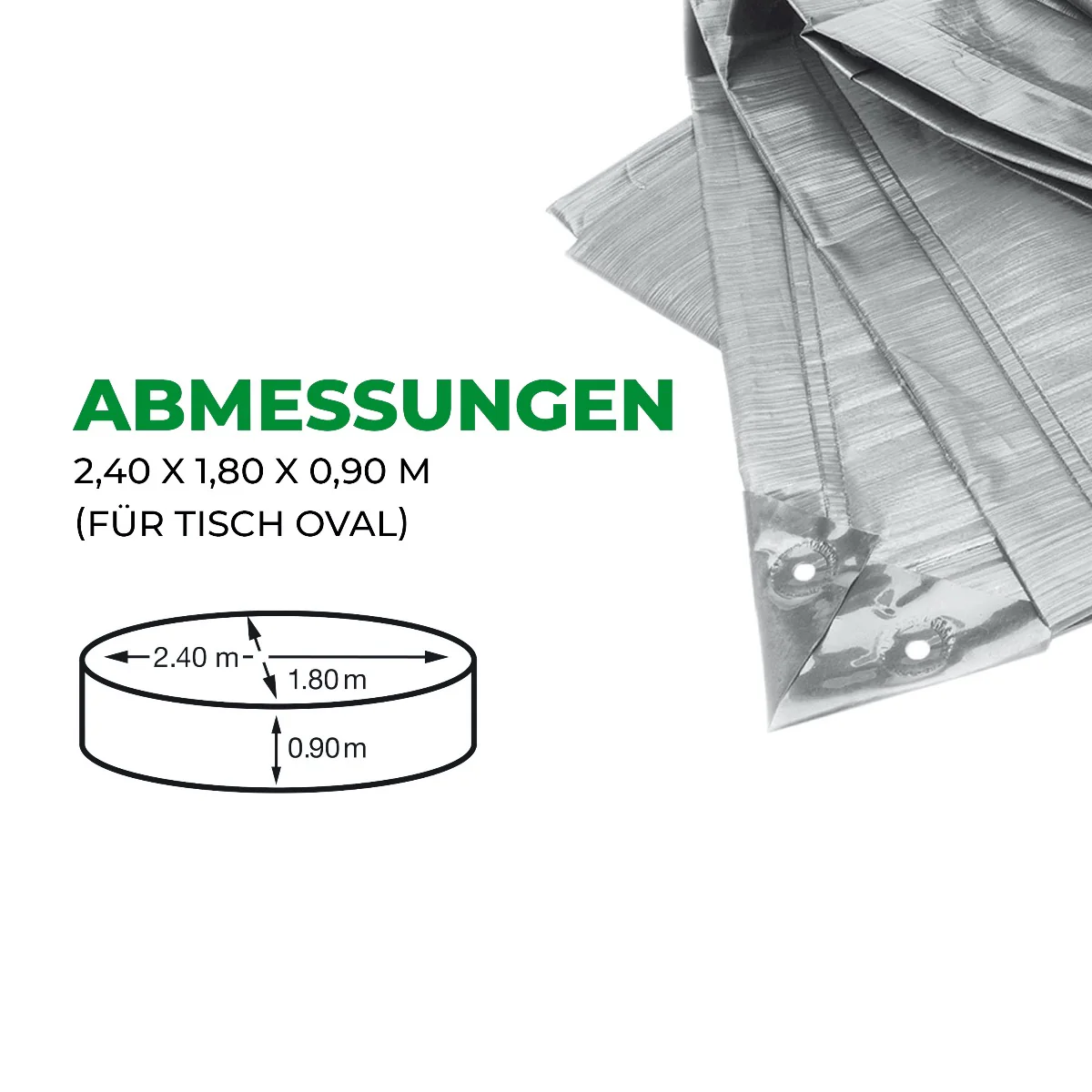Silbergraue 3-fach lamin. Hülle f. rechteckige & ovale Gartentische