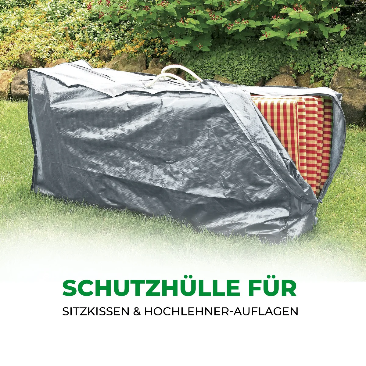 Rainexo Schutzhülle für Sitzkissen - verstauen Sie Ihre Hochlehner-Auflage optimal geschützt